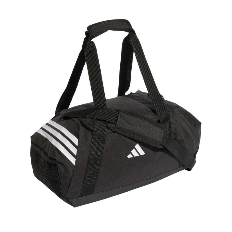 „adidas Tiro S“ krepšys, juodas JY7916. Šis mažas „Adidas“ sportinis krepšys yra kelioninis krepšys iš „Tiro“ kolekcijos. Puikiai tinka treniruotėms ir kasdieniam naudojimui. Jis turi pagrindinį skyrių su užtrauktuku, šoninę kišenę su užtrauktuku ir tinklinę kišenę šone, kad būtų galima greitai pasiekti daiktus. Jis turi ilgą pečių dirželį su judančiu pečių paminkštinimu ir dvi nešiojimo rankenas. Kontrastingas „Adidas“ logotipas šone ir priekyje. Specifikacijos: Matmenys: 49 x 24 cm Talpa: 31,21 l Medžiaga: 100 % poliesteris