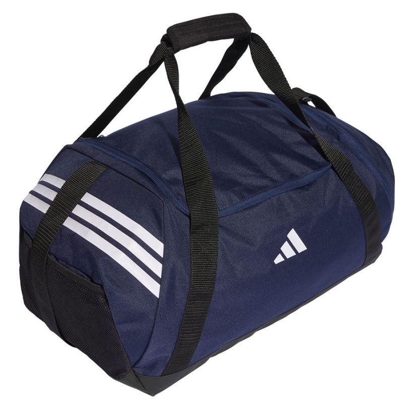 „adidas Tiro Duffle Medium“ krepšys, tamsiai mėlynas, KD4243. Šis vidutinio dydžio „Adidas“ krepšys puikiai tinka treniruotėms ar savaitgalio išvykai. Šis krepšys priklauso futbolo linijai „Tiro 26“. Pagamintas iš patvarios drobės. Pagrindinis skyrius užsegamas užtrauktuku. Jis turi reguliuojamą dirželį ir dvi rankenas. „Adidas“ logotipas atspausdintas ant nugaros. Specifikacijos: Medžiaga: 100 % perdirbtas poliesteris Matmenys: 59,5 x 29 cm Talpa: 57 l Reguliuojamas dirželis su paminkštinimu