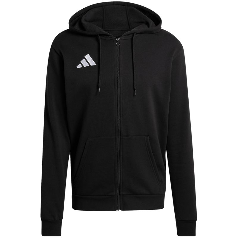 Vyriškas adidas Entrada 26 FZ džemperis su gobtuvu, juodas KF5945. Šis vyriškas adidas džemperis puikiai tinka kasdieniam dėvėjimui. Minkštas medvilninis džersis derinamas su poliesterio pluoštais. Fliso pamušalas. Standartinis kirpimas. Atviros šoninės kišenės. Raišteliu surišamas gobtuvas. Elastiniai rankogaliai ir apačia. Mažas logotipas. Medžiaga: 70% medvilnės, 30% perdirbto poliesterio.