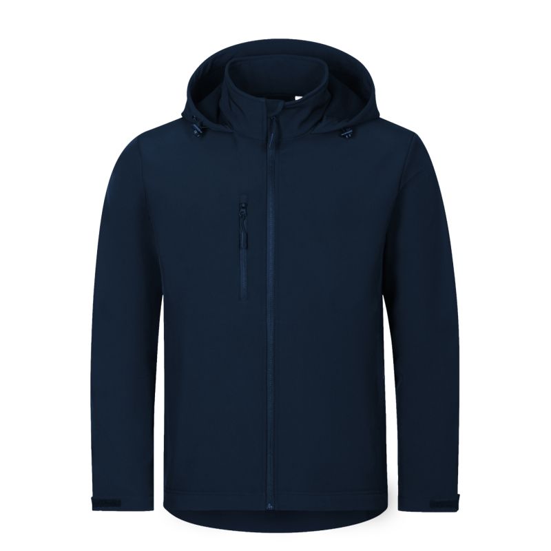 Minkštas audinys: 96 % poliesteris, 4 % elastanas, 100D, 4 kryptimis tempiamas, vandeniui atsparus paviršius, vidinė pusė: 100 % poliesteris – mikroflisas, nesipūkuojantis paviršius be etiketės – paruoštas prekės ženklo keitimui, dvisluoksnis softshell, tiesaus kirpimo su šoninėmis detalėmis, užtrauktukas priekyje per visą ilgį su apsauga nuo smakro, elastingas gobtuvas su raišteliu ir raišteliu apačioje, etiketė gale neutralaus dydžio, reguliuojami rankovių apvadai su „Velcro“ juosta, kišenės su spiraliniu užtrauktuku, krūtinės kišenė, šiek tiek prailginta gale, vidinė fliso medžiaga su nesipūkuojančiu paviršiumi.