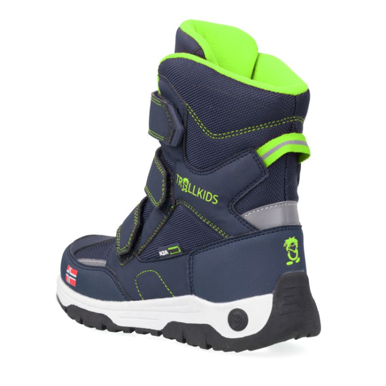 • „Trollkids Kids Lofoten“ žieminiai batai sukurti jauniausiems žiemos nuotykių ieškotojams. Jie puikiai tinka kasdieniams pasivaikščiojimams ir žaidimams sniege, jie palaiko šilumą, sausumą ir komfortą net ir atšiauriomis oro sąlygomis. Vandeniui atsparios medžiagos apsaugo nuo drėgmės ir sniego, užtikrindamos komfortą ilgomis žiemos dienomis. Sintetinė ir tinklinė viršutinė dalis sujungia patvarumą su modernia išvaizda, tuo pačiu leisdama pėdoms kvėpuoti. Kvėpuojančios savybės skatina drėgmės išgarinimą ir apsaugo pėdas nuo perkaitimo.