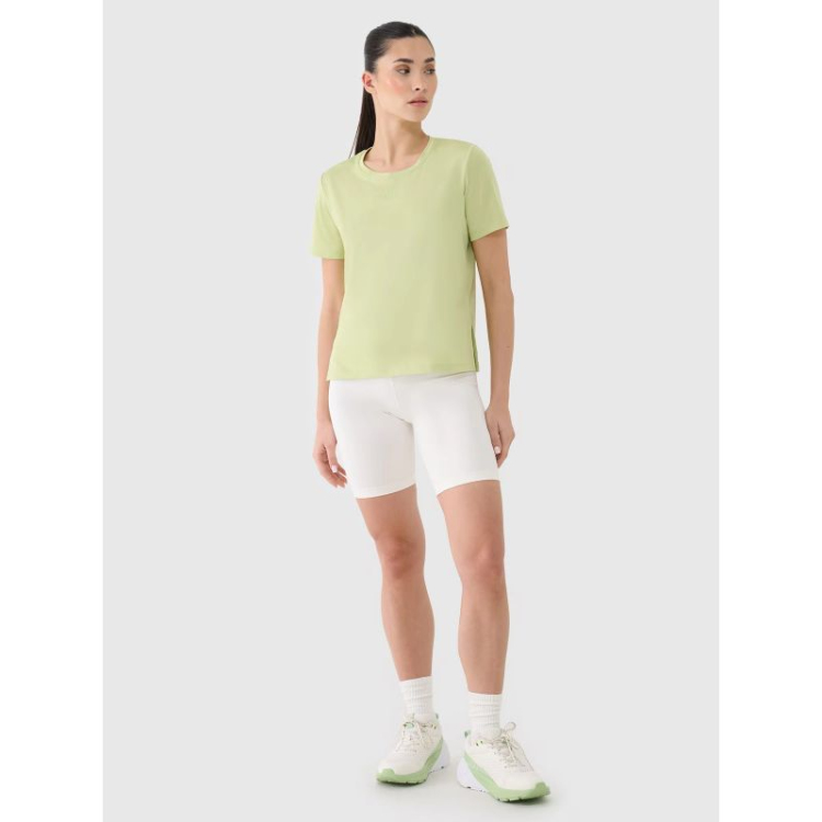 Moteriški treniruočių marškinėliai „4F“ – puikus pasirinkimas moterims, ieškančioms patogumo, atramos ir funkcionalumo treniruočių metu. Dėl modernių medžiagų jie puikiai prisitaiko prie kūno, užtikrindami visišką judėjimo laisvę ir komfortą intensyvių treniruočių metu.