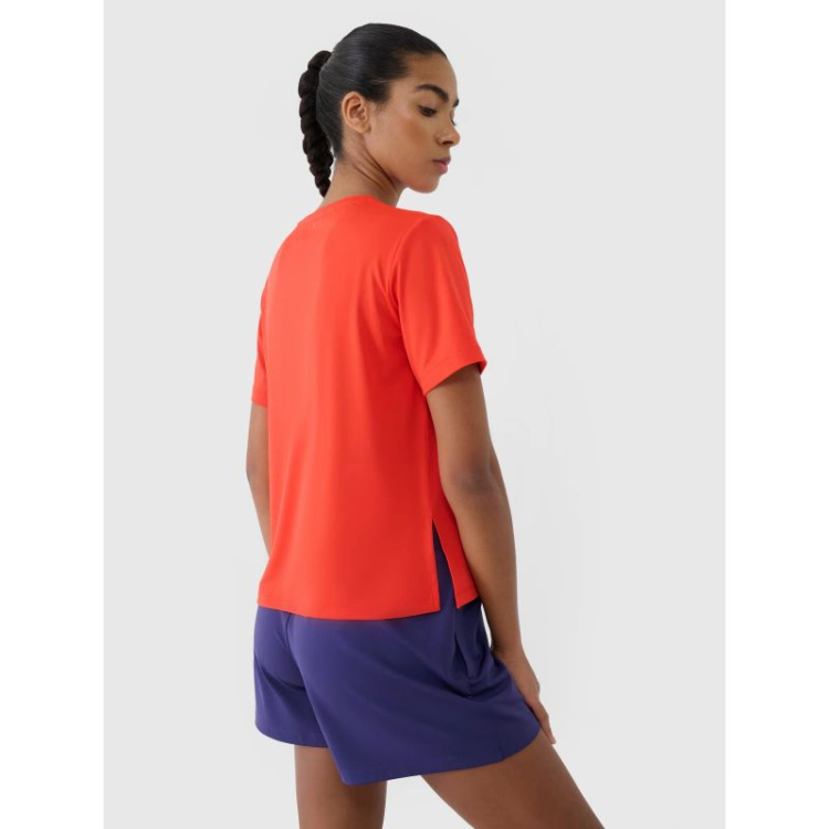 Moteriški treniruočių marškinėliai „4F“ – puikus pasirinkimas moterims, ieškančioms patogumo, atramos ir funkcionalumo treniruočių metu. Dėl modernių medžiagų jie puikiai prisitaiko prie kūno, užtikrindami visišką judėjimo laisvę ir komfortą intensyvių treniruočių metu.