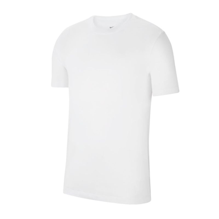 Nike JR Park 20 marškinėliai * Nike jaunimo treniruočių marškinėliai * standartinis kirpimas užtikrina judėjimo laisvę * apykaklės raištelis * gamintojo prekės ženklas ant dešinės rankovės * sudėtis: 100 % medvilnė * spalva: balta Nike Park marškinėliai yra lengvo dizaino, puikiai tinkantys treniruotėms ar rungtynėms. Jie pagaminti iš kvėpuojančios medvilnės, kuri padeda išlikti vėsiems net intensyvios veiklos metu.