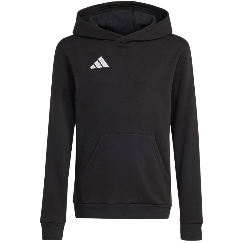 „adidas Entrada 26“ vaikiškas džemperis su gobtuvu, juodas JZ6569. „adidas Entrada“ vaikiškas džemperis su gobtuvu yra būtinas kiekvieno jauno futbolininko atributas. Jo minkšta konstrukcija, pagaminta iš kvėpuojančios medvilnės ir patvaraus poliesterio, nedirgins odos. Vidus paminkštintas. Klasikinis kirpimas leidžia nevaržomai judėti. Priekinėje kišenėje yra kišenė. Nereguliuojamas, integruotas gobtuvas apsaugo galvą nuo atšiaurių oro sąlygų. Briaunoti rankogaliai ir apačia. Siuvinėtas prekės ženklo logotipas. Medžiaga: 70 % medvilnės, 30 % perdirbto poliesterio.