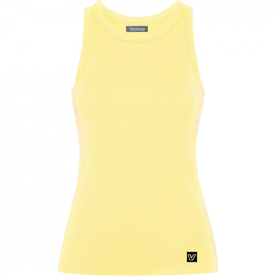 • Rib audinio moteriški marškinėliai be rankovių.