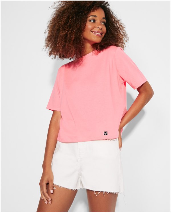 • Laisvai krentantys marškinėliai trumpomis rankovėmis moterims.
